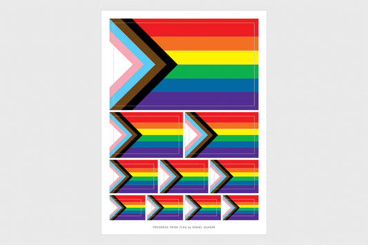 The Progress / Progressive LGBTQ flag was created by Daniel Quasar incorporating elements from both the Philadelphia Pride flag and the Trans Pride Flag to bring focus on inclusion and progress within the community.