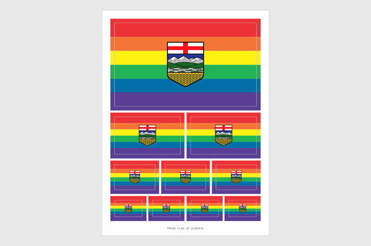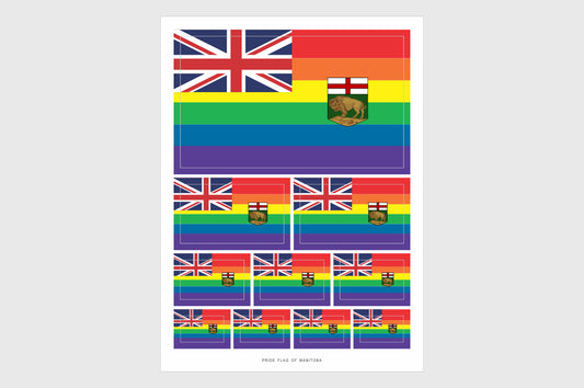 LGBTQ Pride flags for every Canadian province and territory merging the iconic LGBTQ rainbow pride flag colours printed on stickers and a variety of products!